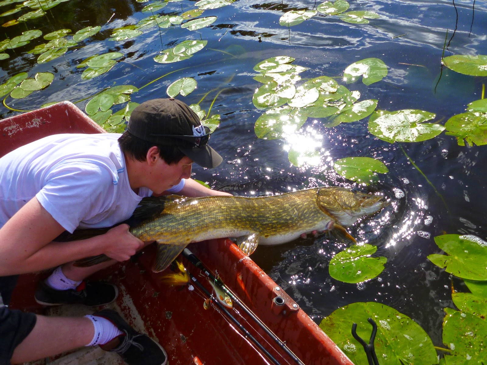 Kala kiskaisi heti alkuun mukavan syöksyn ja huuto veneessä oli sen mukaista! Vähän tärisi itselläkin kädet haavin varressa, sen verran massiivisen näköinen otus oli siiman päässä! Ensimmäinen kauhaisu ei tuottanut tulosta mutta seuraavalla sain kalan haaviin. Kumihavaksessa köllötteli kunnon järvihauki, nyt ei voi olla kymppi kaukana! Mittaa pitkältä kalalta löytyi peräti 116 cm ja painoa laihassa kunnossa 9,7 kg. Todella upea kala ja Handyyn uusi järvienkka! Muutamat kuvat ja jätti takaisin kasvamaan vielä isommaksi.