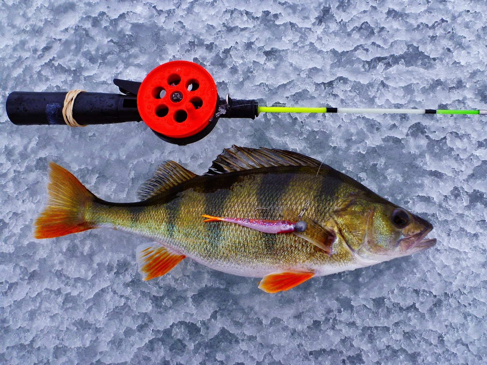 Iltapäivä oli jo pitkällä kun vastaan tuli isompi vanha railo. Tuli sellainen tunne että nyt tähän reikä. Tasuri väliveteen ja kohta ilmestyi tavaraa kaiun näytölle. Siinä oli kaksi kalaa jotka lähtivät nousemaan tasuria kohti. Toinen oli aika iso näköinen, toinen selvästi pienempi. Ne eivät kuitenkaan ottaneet vaan painuivat pois. Viivoista paksumpi jäi vähän pohjan yläpuolelle ja päätin kokeilla vertikaalijigiä. Rupesin äkkiä laskemaan jigiä samalla toivoen että kala ei ehdi hävitä. Viiva rupesi pikkuhiljaa häviämään kaiun näytöltä, mutta ilmestyi kuitenkin takaisin kun sain jigin pari metriä sen yläpuolelle. Se ei kuitenkaan reagoinut mitenkään joten pudotin jigiä vielä metrin verran alaspäin. Sitten se lähti tulemaan rauhallisesti jigiä kohti. Kalan ja jigin jättämät viivat yhdistyivät ja painava tärppi tuli. Nyt on iso! Avantoa lähestyttäessä alkoi jo jännittää, sen verran raskaan tuntuinen otus oli siiman päässä. Sitten jäälle pyörähtikin kunnon ahven ja huuto oli sen mukaista! :D Fiilis oli huikea, se tunne kun vaikean alkutalven jälkeen todellinen onnistuminen vihdoin tulee. Päivä oli ollut tähän mennessä jo ikimuistoinen ja tämä kala kruunasi sen. 1260 g/45,5 cm, elämäni toiseksi suurin ahven.